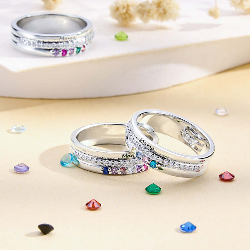 Personalized Birthstones Ring with Engraved Text Family Ring Jewelry Birthday Gift for Mom Grandma