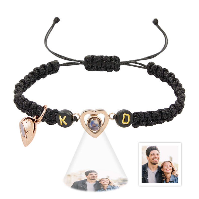 Personalized Braided Photo Projection Magnetic Bracelet Fishtail Rope Couple's Bracelet Gifts for Lover