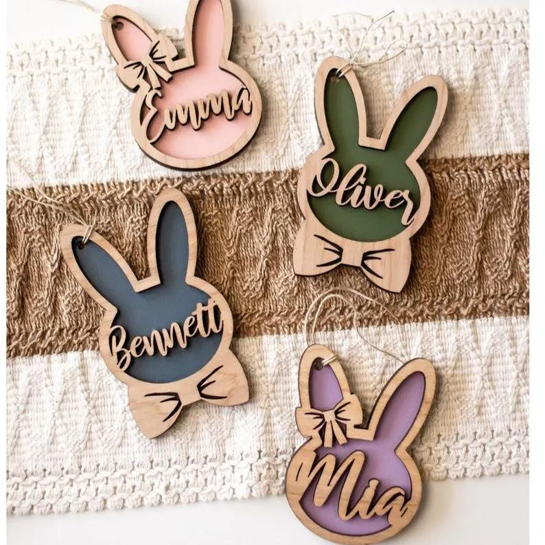 Personalized Bunny Easter Basket Tag Custom Easter Place Card Name Easter Basket Name Charm Kid Easter Basket Child Gift