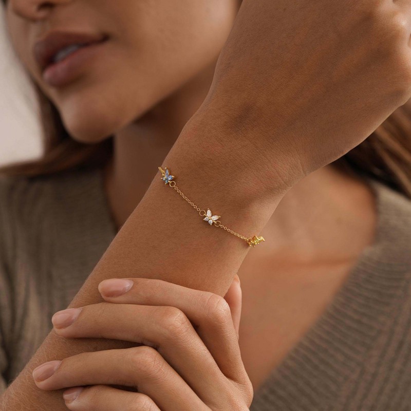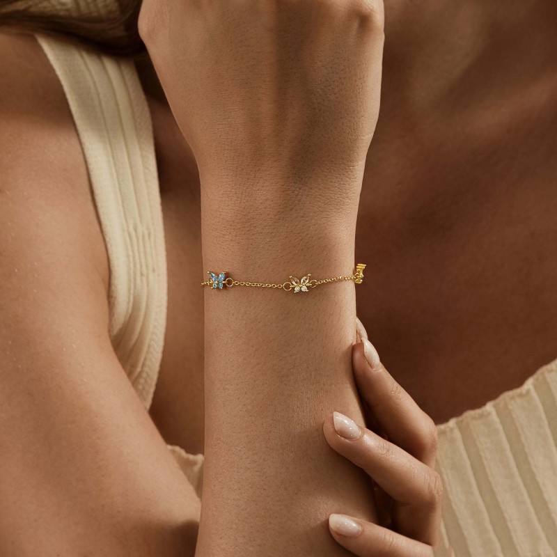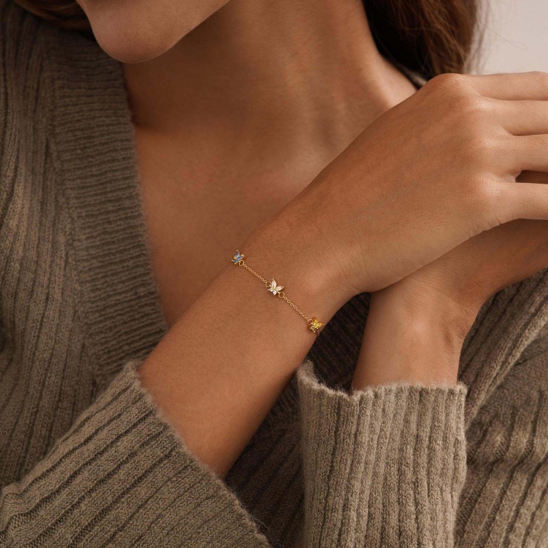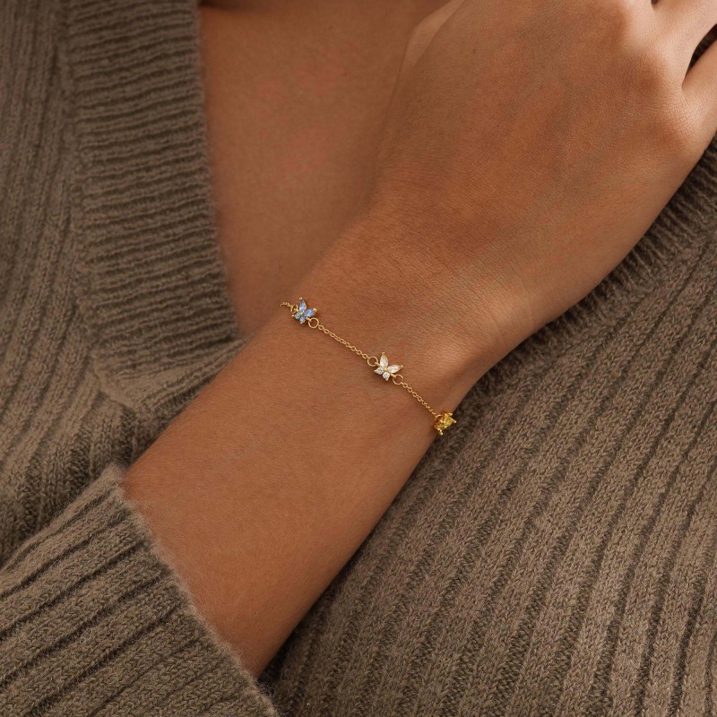 Personalized Butterfly Birthstone Bracelet Custom 1 to 5 Birthstones Jewelry Custom Family Members Names Bracelet Custom Gift for Mom Mother's Day Gift for Wife