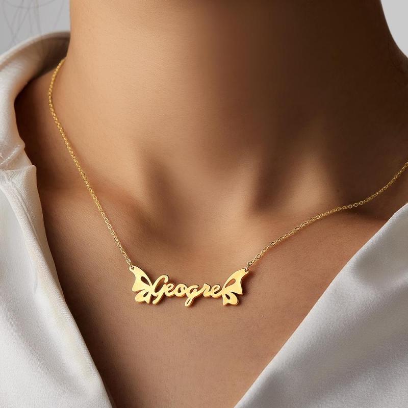 Personalized Butterfly Name Necklace 14K Gold For Her - Golden