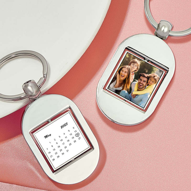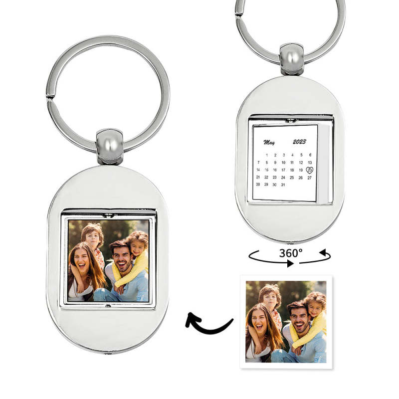 Personalized Calendar Keychain Turnable Double Sides Keychains Gift for Him