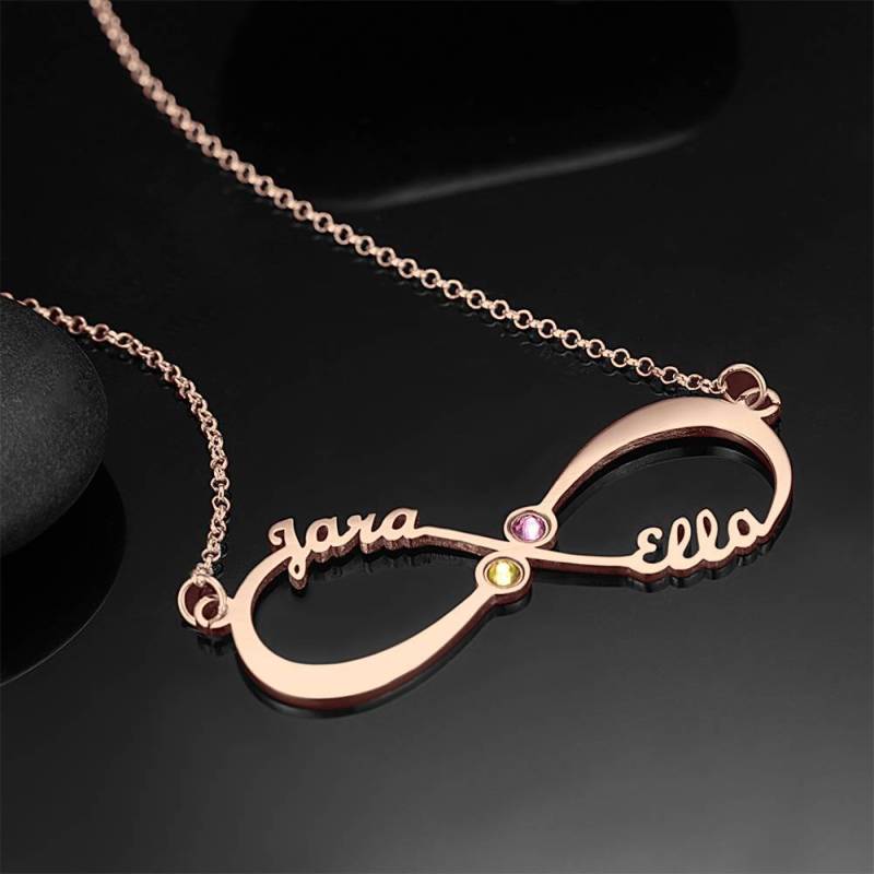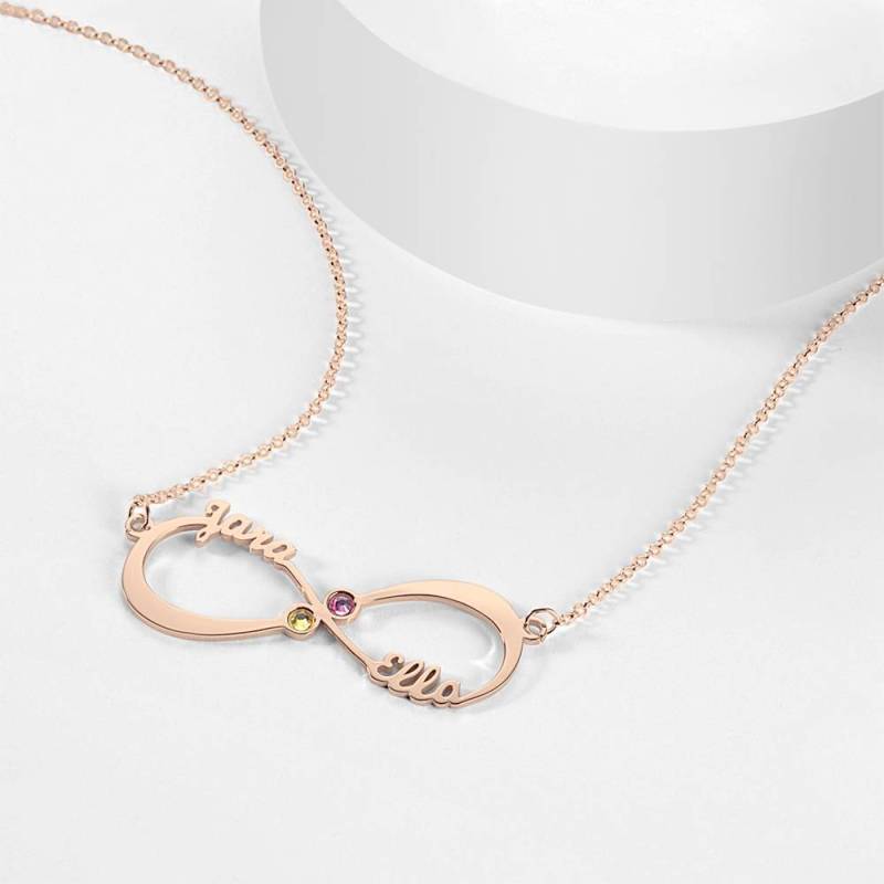 Name Necklace with Birthstone Infinity Necklace Rose Gold Plated