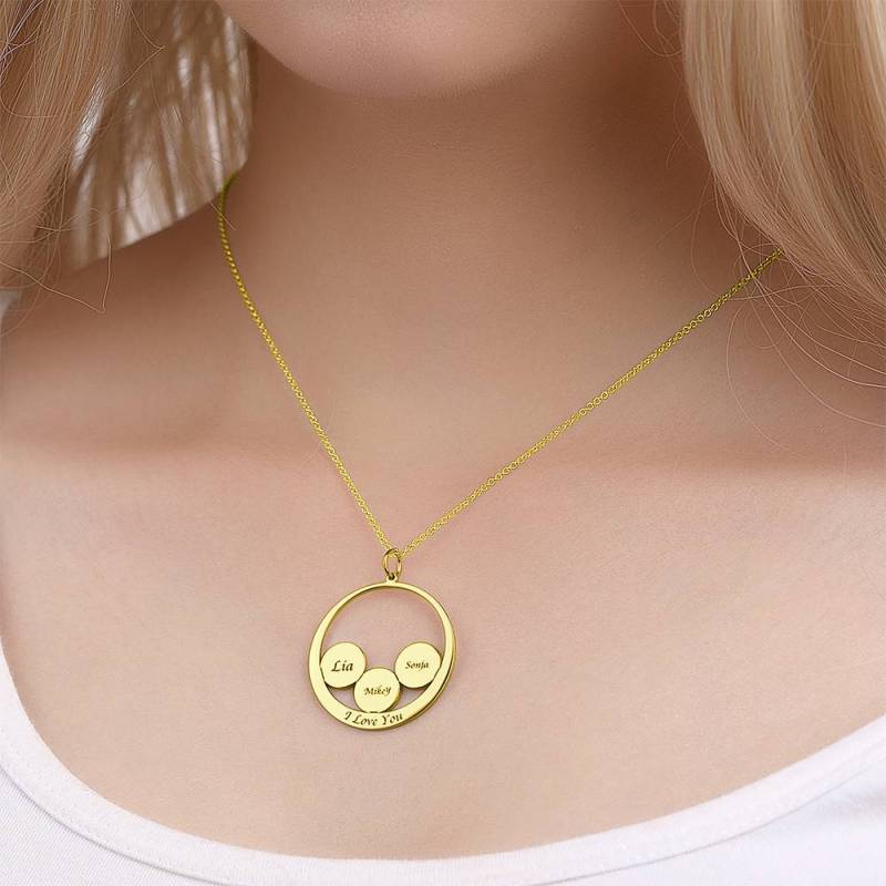 Round Shape Engraved Necklace 14K Gold Plated