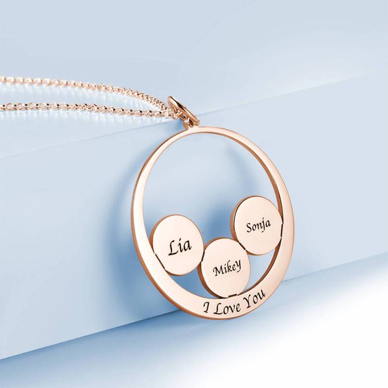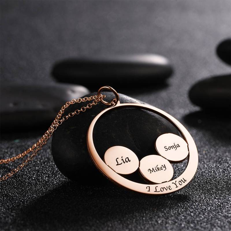 Personalized Round Shape Engraved Necklace Rose Gold Plated