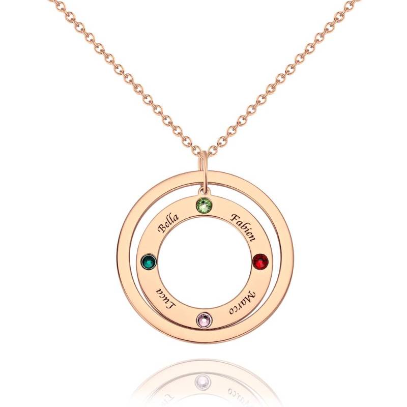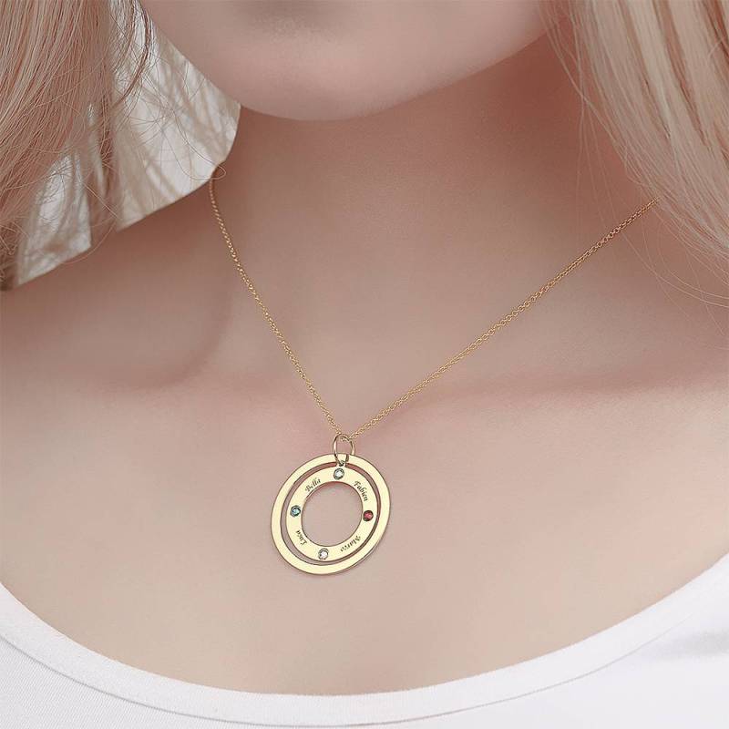 Personalized Two Circles Name Necklace with Custom birthstone Necklace, Engraved Necklace 14K Gold Plated