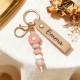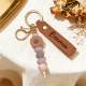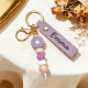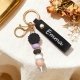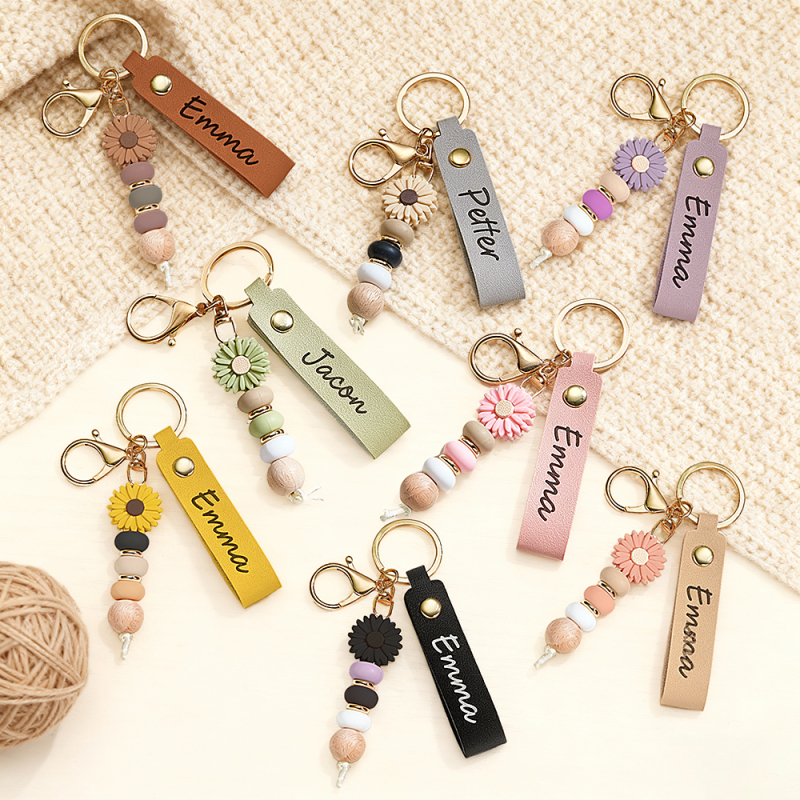 Personalized Daisy Beaded Keyring Custom Name Leather Keychain Engraved Daisy Keychain Faux Leather Daisy Beaded Key Chain Gift for Her