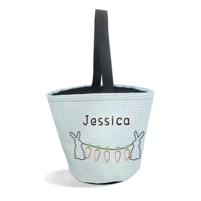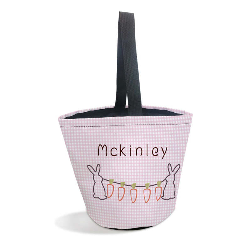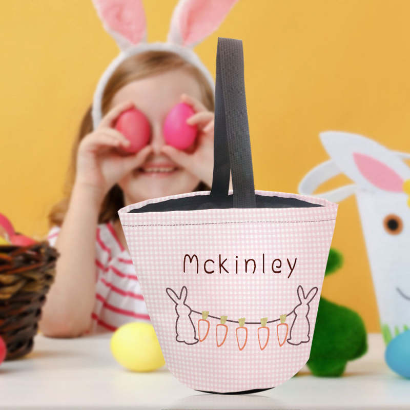 Personalized Easter Basket Custom Name Easter Gingham Bunny Basket Gifts for Kids