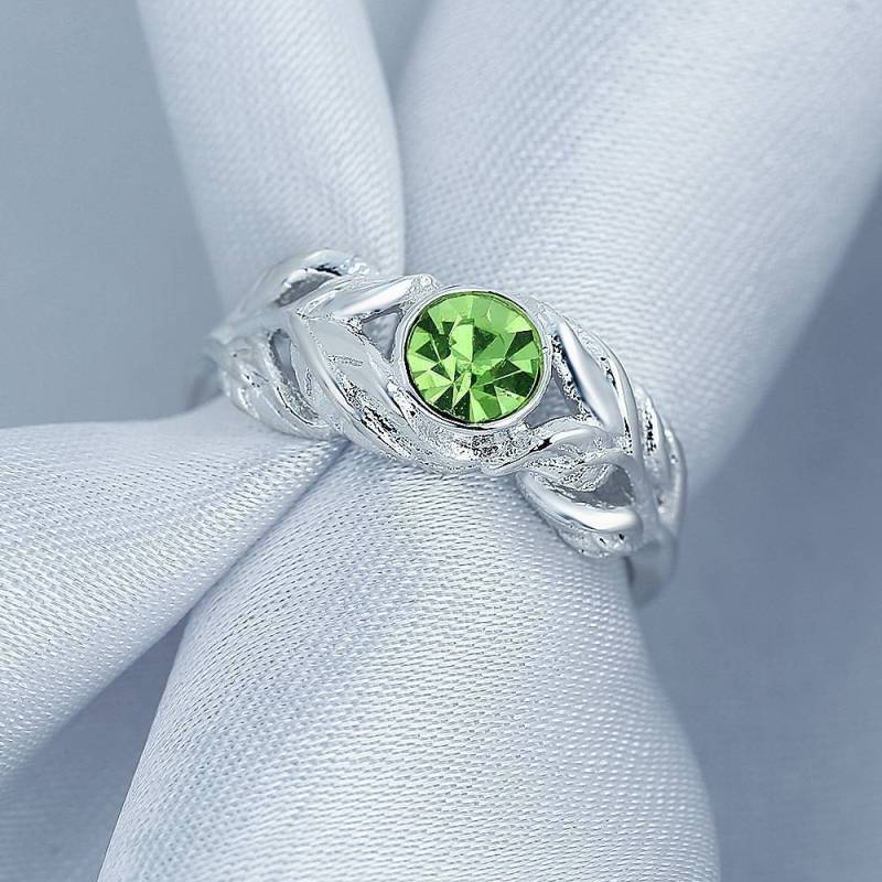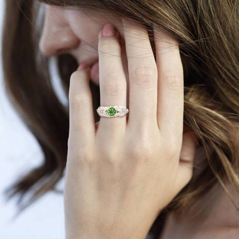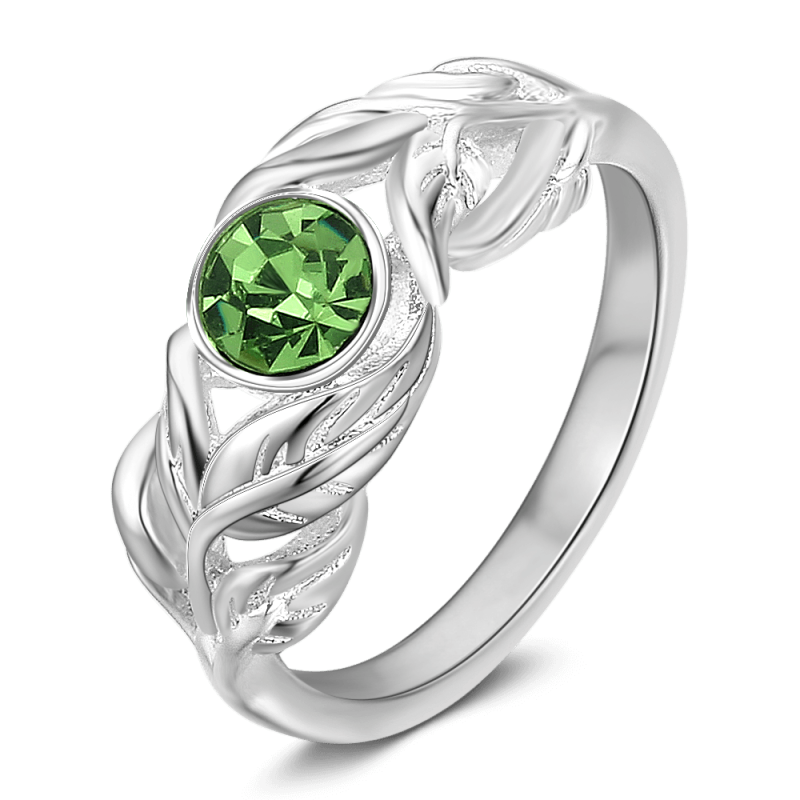 Personalised Birthstone Leaf Ring Silver