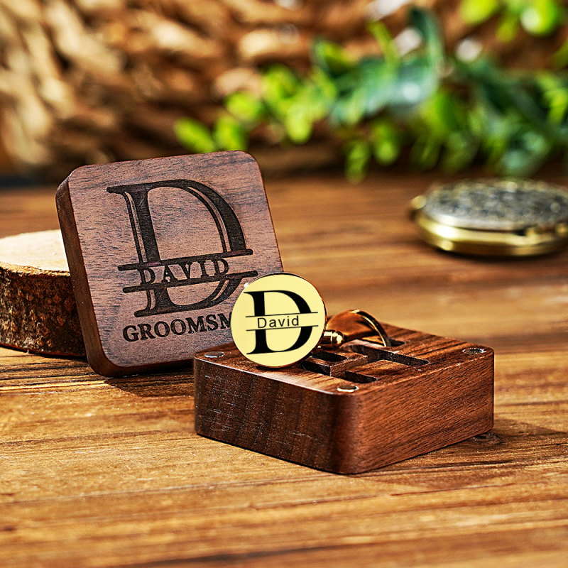 Personalized Engraved Cufflinks Set with Wooden Box Wedding Gift for Men Groomsmen