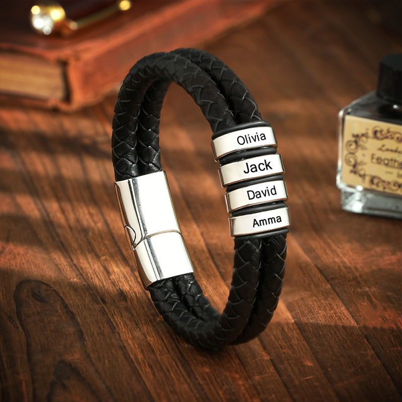 Personalized Engraved Leather Bracelet Custom Bead Braided Leather Bracelet