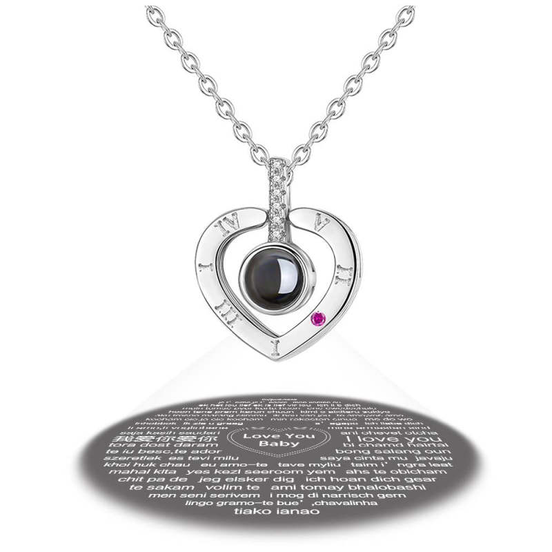 Personalized Engraved With 100 Languages Says I Love You Projection Necklace Heart-shaped Silver