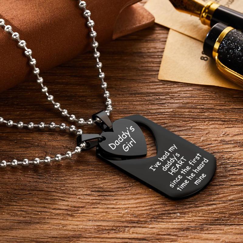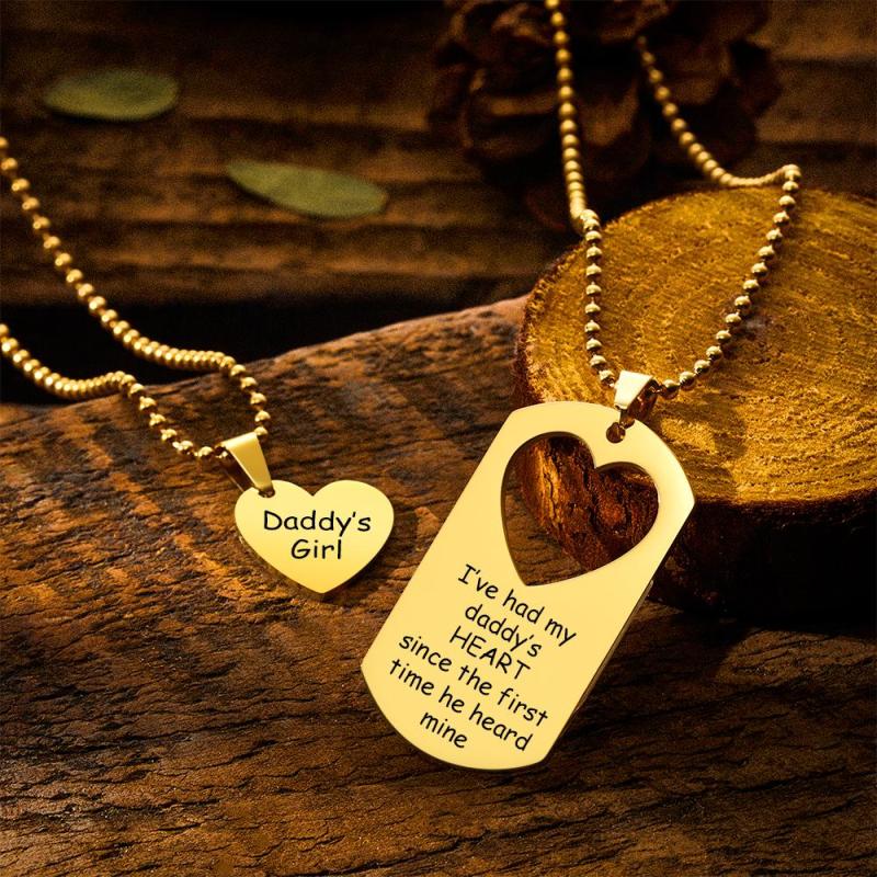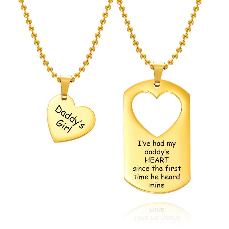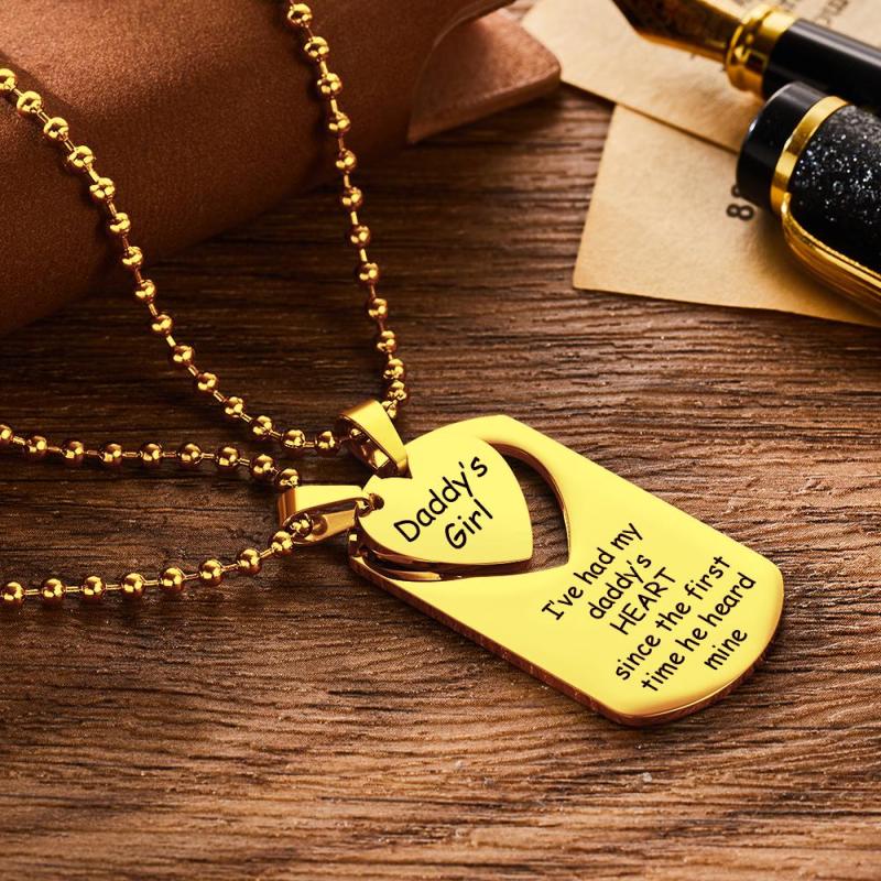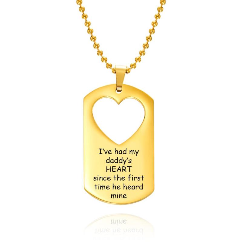 Personalized Necklace With Heart Gold Custom Engraved Necklace for Daddy Mother Friends