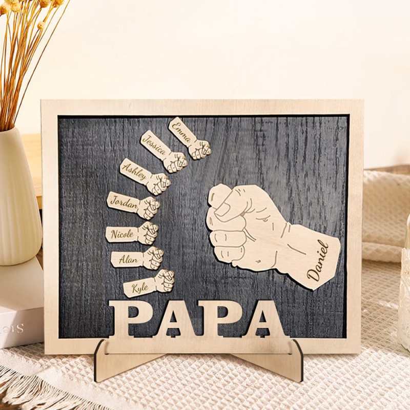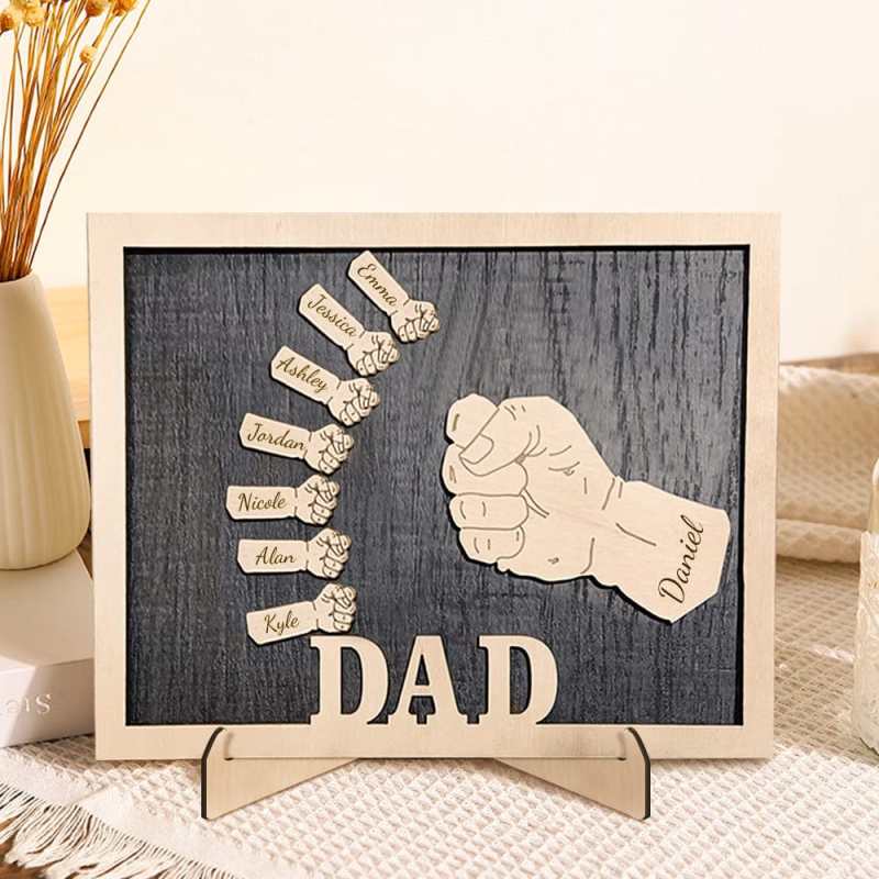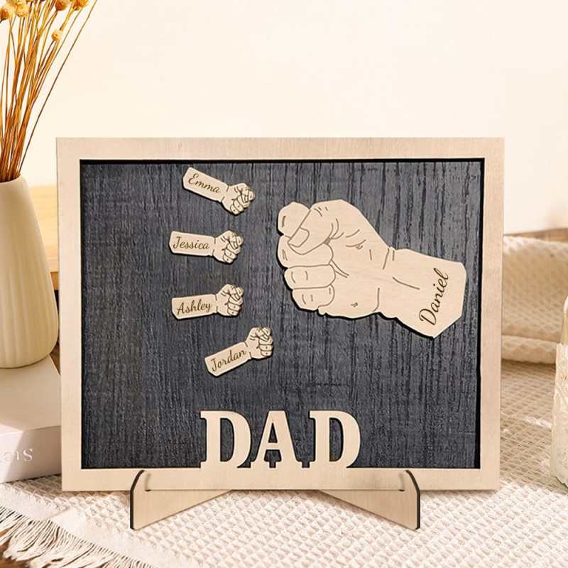 Personalized Fists Wooden Plaques With Names Decor Gift For Father's Day
