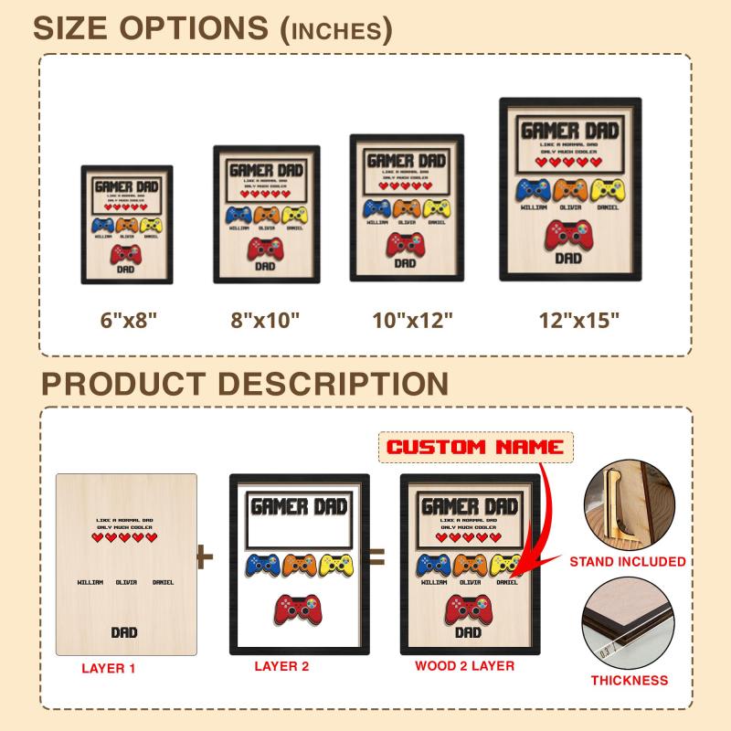 Personalized Gamer Dad Wooden Plaque Custom Kids Names Controller Wood Desktop Decor Custom Gamer Dad Plaque Father's Day Gift for Dad