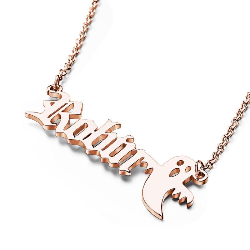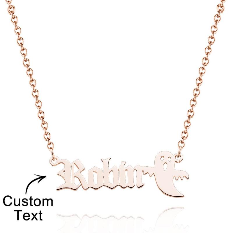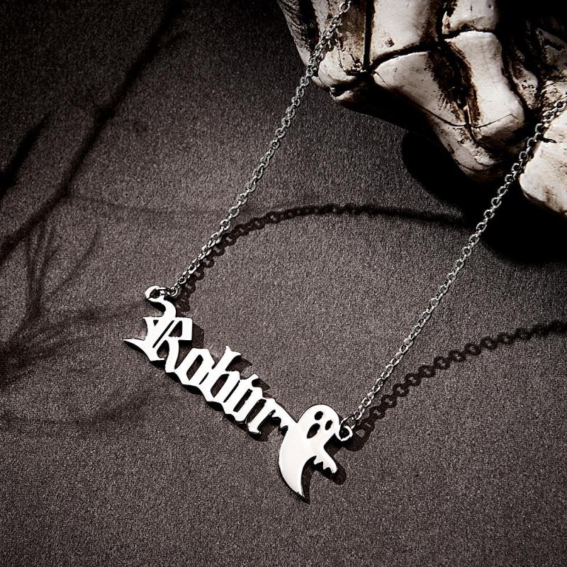 Personalized Ghost Name Necklace Custom Old English Gothic Font Pendant Necklace Minimalist Ghost Jewelry Spooky Halloween Gift for Kids