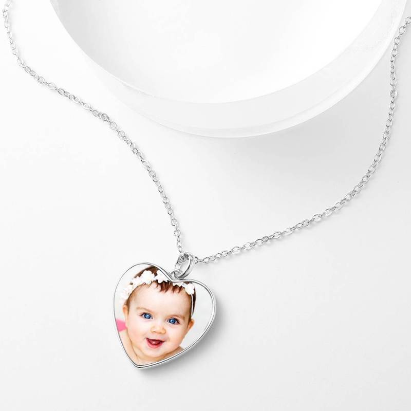 Personalized Gift Children's Heart Photo Necklace with Engraving Platinum Plated