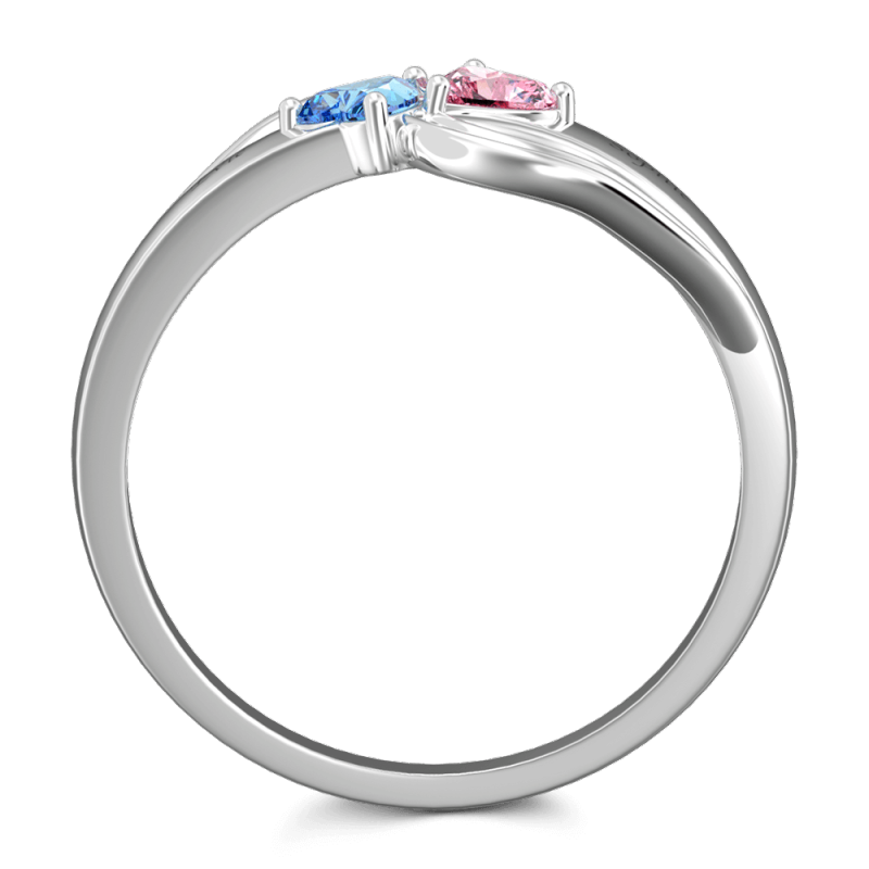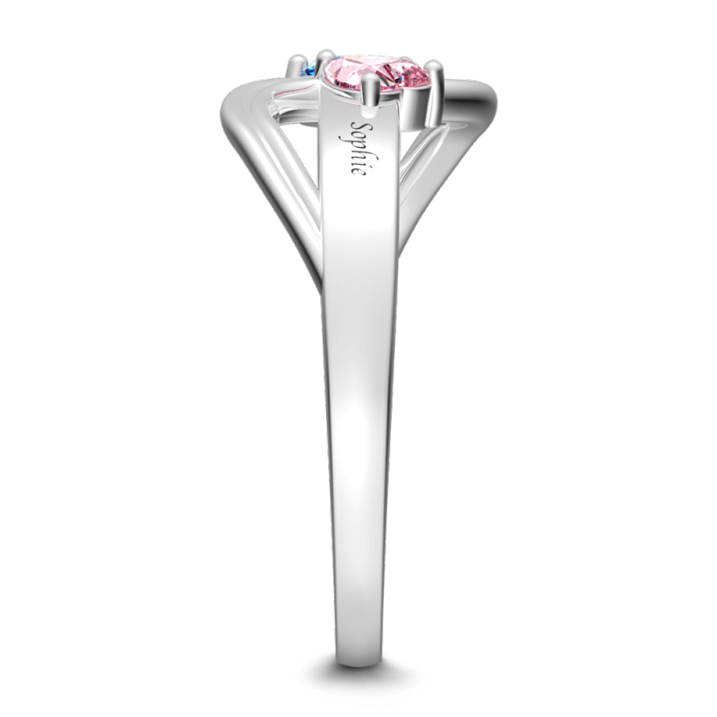 Personalized Heart Birthstone Promise Ring with Engraving Silver