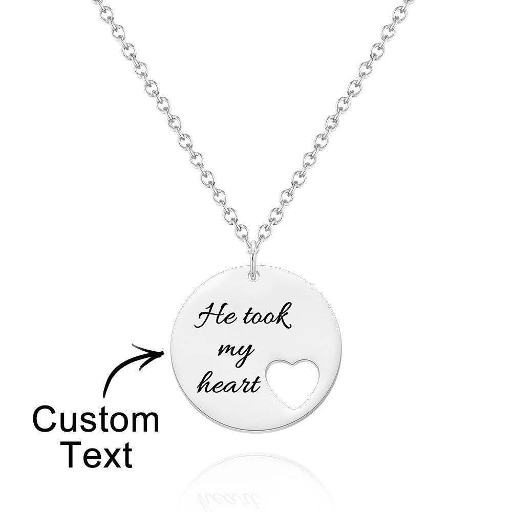 Personalized Heart Cut Necklace Custom Engraved Heart Hollow Circle Pendant