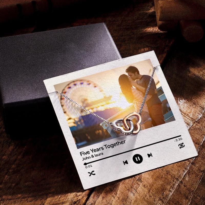 To My Wife Personalized Heart Necklace With Custom Photo Message Card For Girlfriend Wife Anniversary Gift