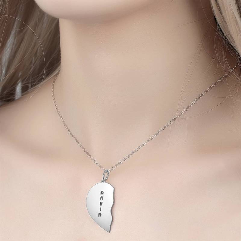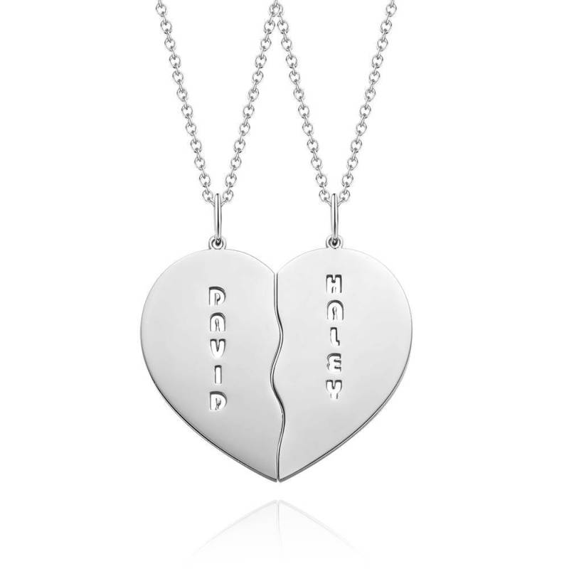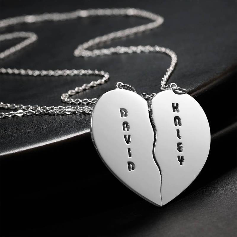 Personalized Heart Shape Couples Name Necklace Silver