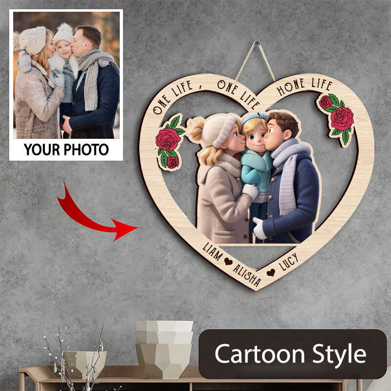 Personalized Heart Shaped Cartoon Photo Wooden Picture Frame
