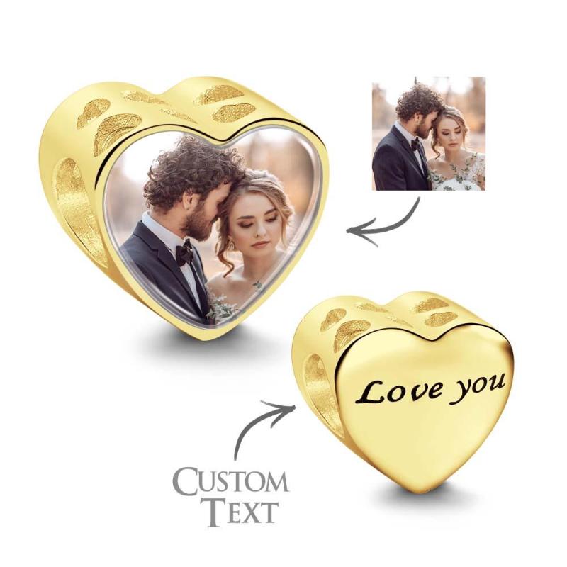 Personalized Heart-Shaped Photo Charm With Text Romantic Gifts For Her