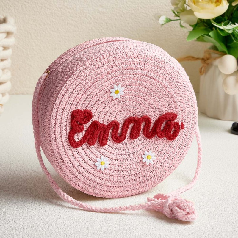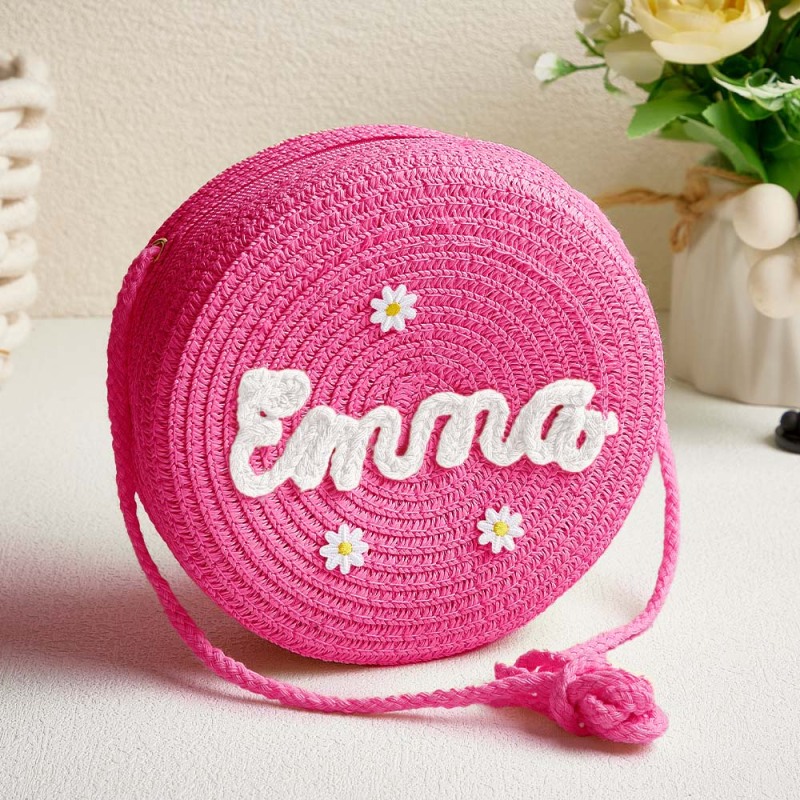 Personalized Kids' Flower Straw Cross-body Bag Custom Name Flower Straw Bag Cute Woven Straw Bag for Kids with Name Gift for Girls