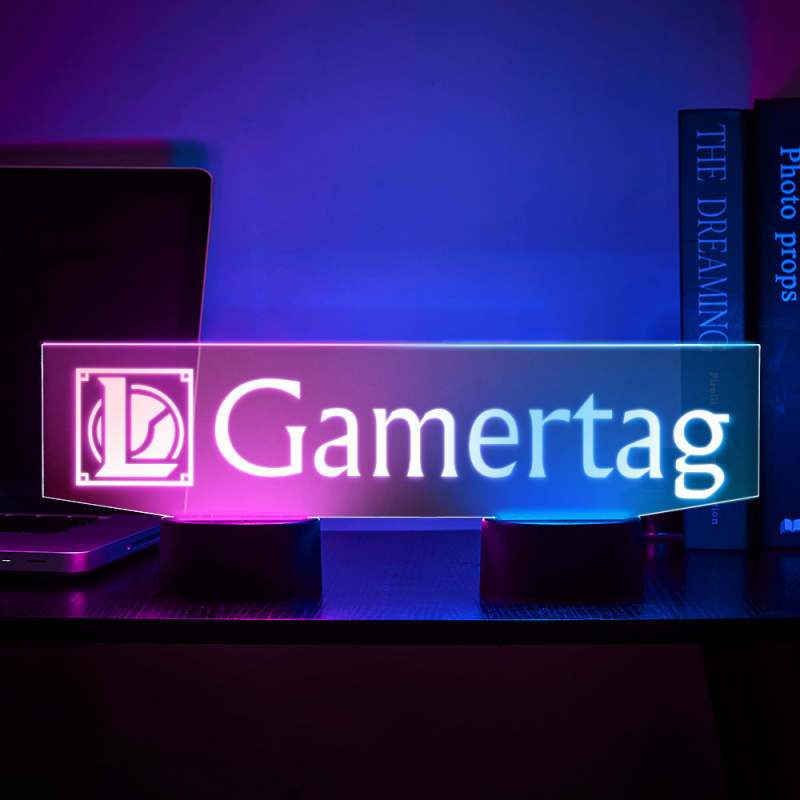Personalized League of Legends Night Light Custom Gamertag Sign Dual Base Backlit LED Custom Gaming Gift