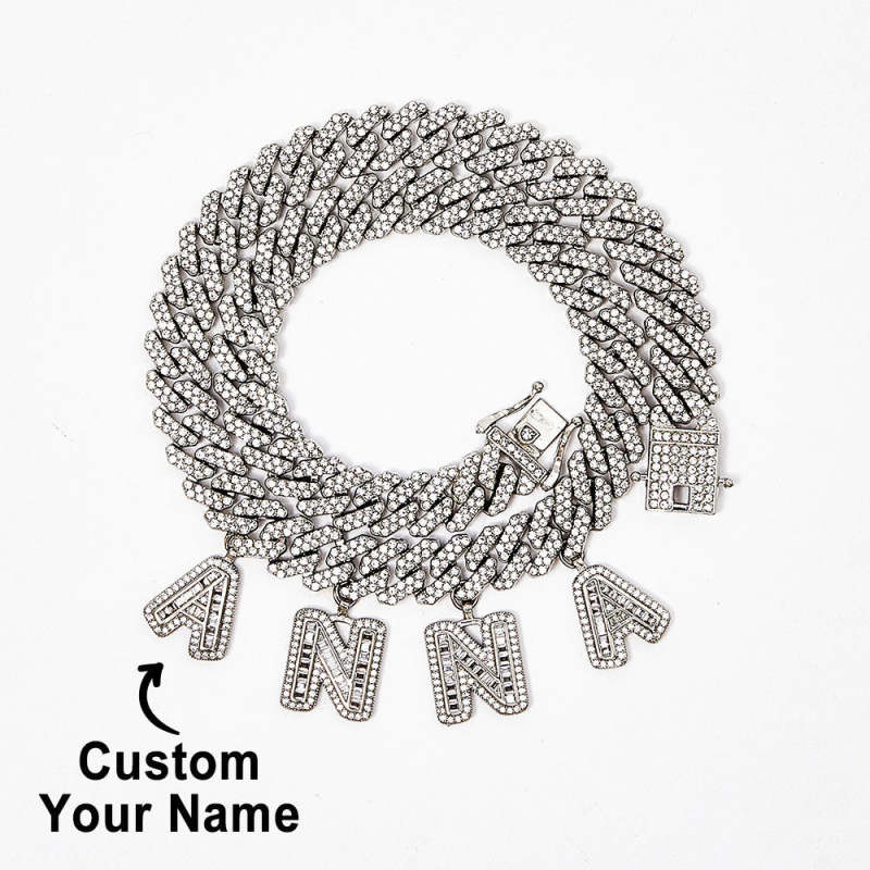 Personalized Letters Cuban Chain Custom Name Choker Bling Hip Pop Necklace Gift for Sisters Friends