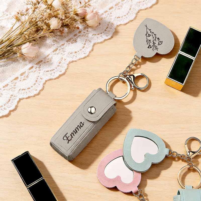 Personalized Lipstick Bag Keychain Custom Name Anti Lost Lipstick Storage Bag Lipstick Case with Mirror Gift for Her
