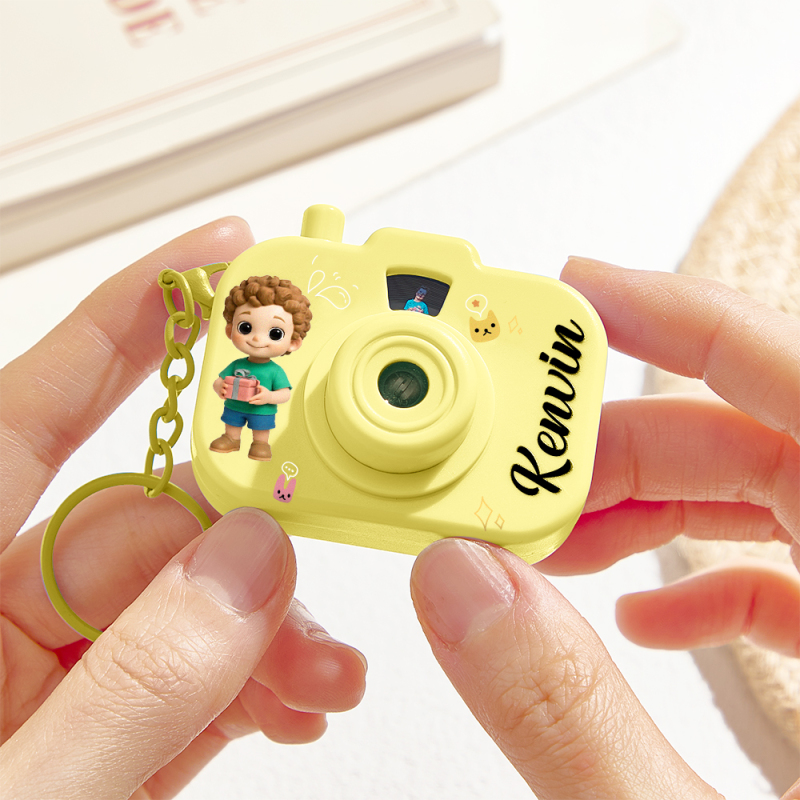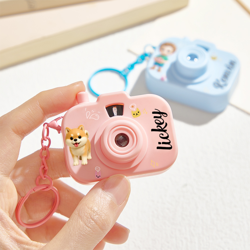 Personalized Mini Camera Projection Keychain Custom Photos, Name & Cartoon Character Customized Camera Charm with 8 Photo Gifts for Kids