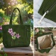 Personalized Name Birth Flower Corduroy Tote Bag Custom Birth Month Flower Corduroy Tote Bag Large Capacity Zippered Commuter Handbag with Side Pockets Gift for Her