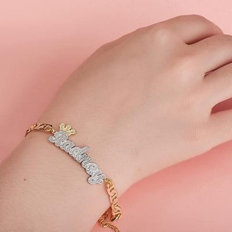 Personalized Name Bracelet With Crown Chain Hip Hop Bracelet Jewelry Gifts For Men
