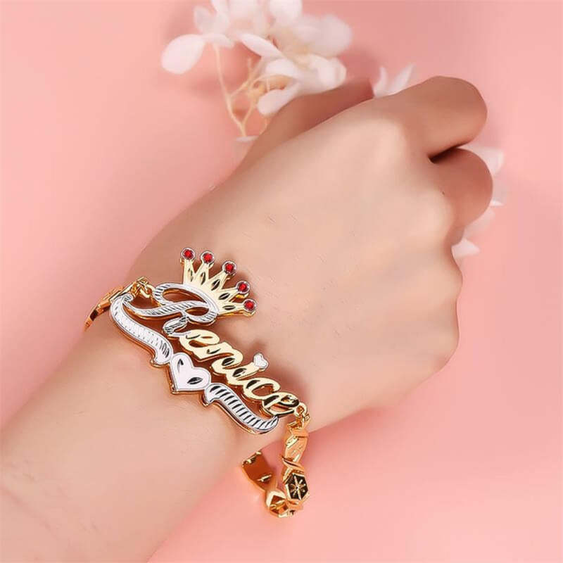 Personalized Name Bracelet With Crown Initial Chain Bracelet Jewelry Gifts For Men