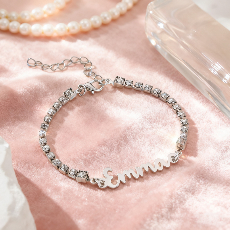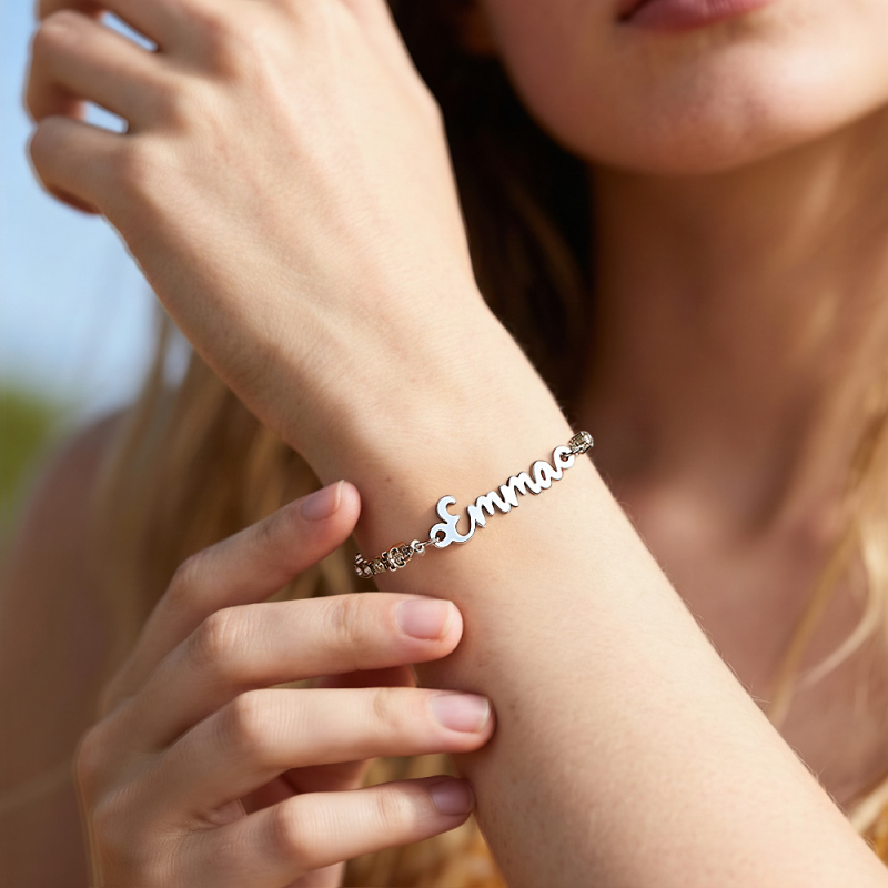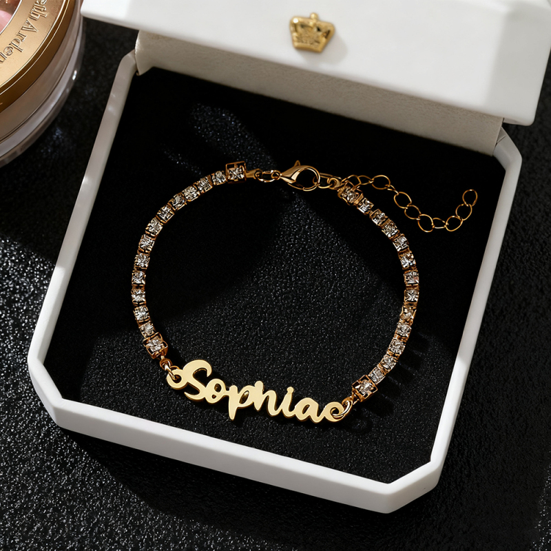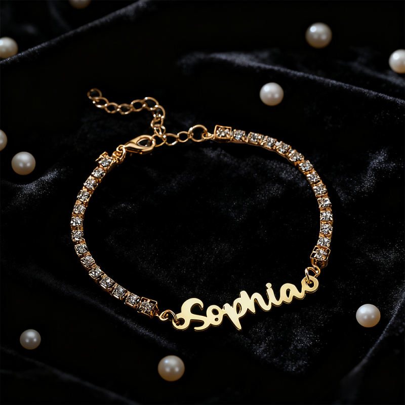 Personalized Name Bracelet with Diamond Chain Custom Cursive Name Bracelet Dainty Custom Name Bracele Christmas Gift for Her