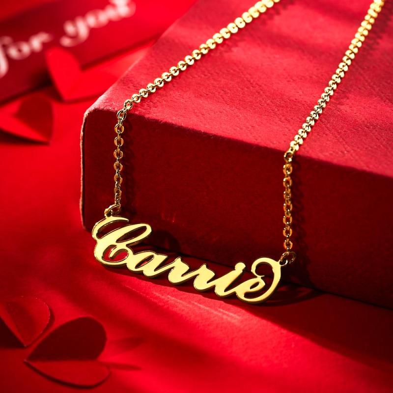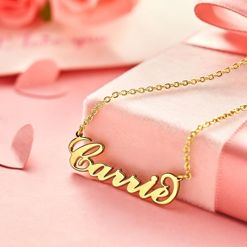 Personalized Name Necklace 14K Gold Plated Carrie Mother's Day Gifts Best Gift for Mom Copper Custom Name Necklace