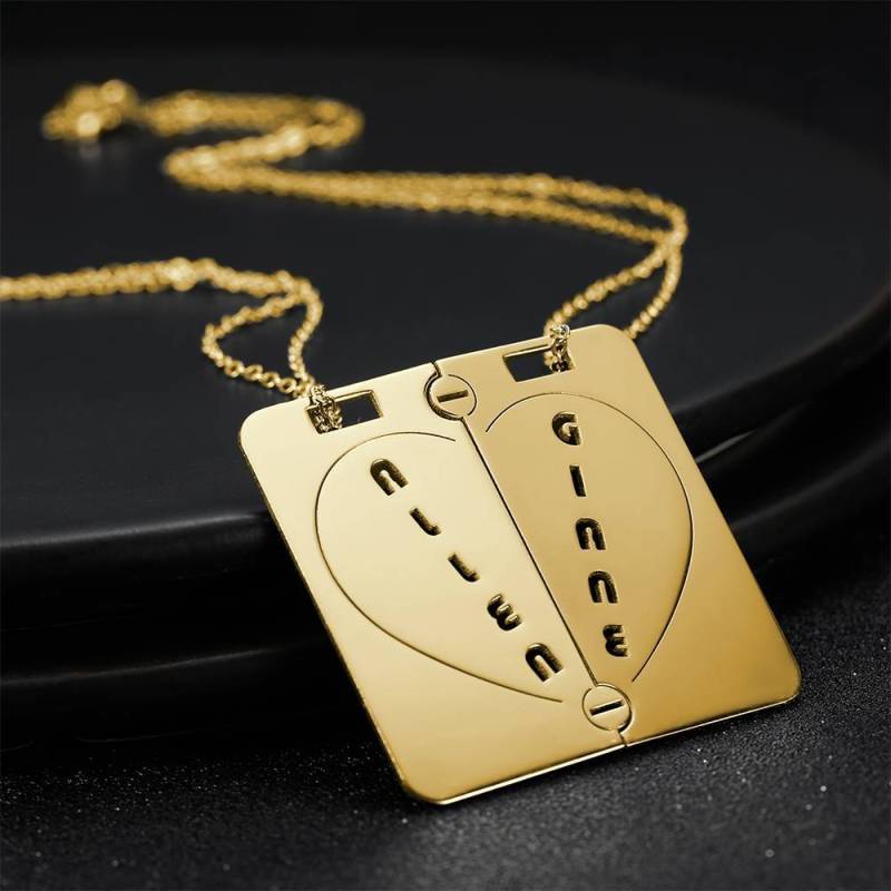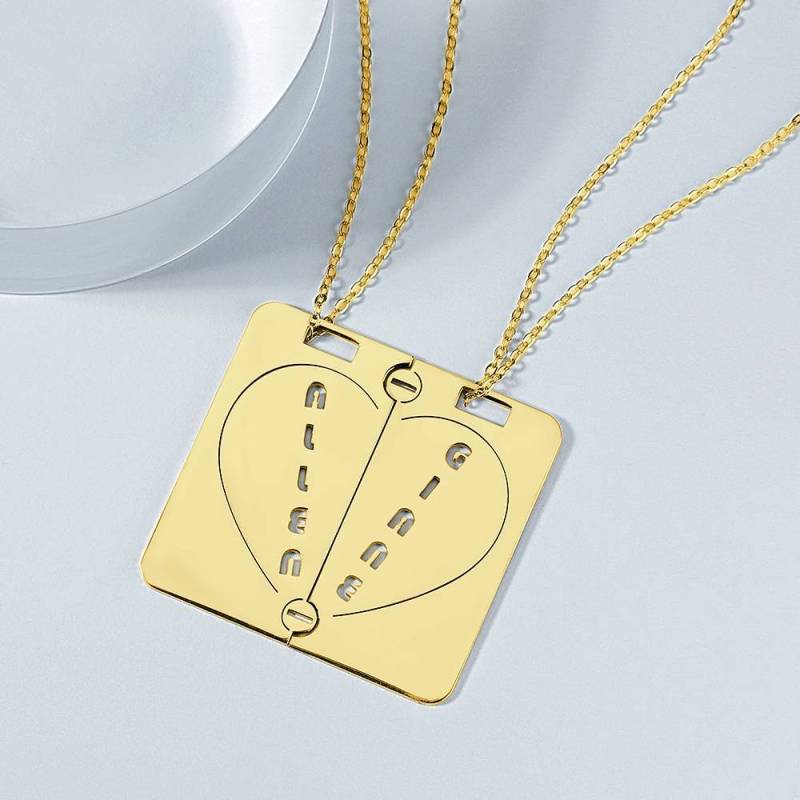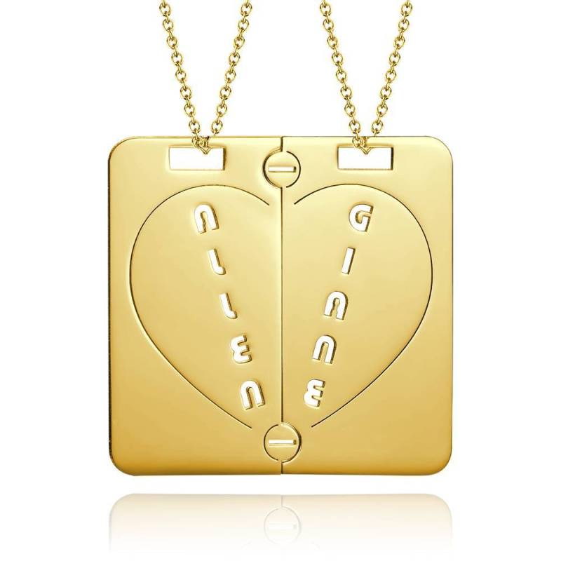 Personalized Name Necklace Couples NecklaceBroken Heart 14k Gold Plated Golden