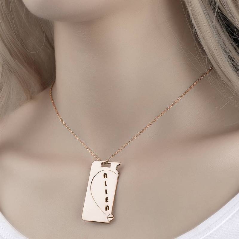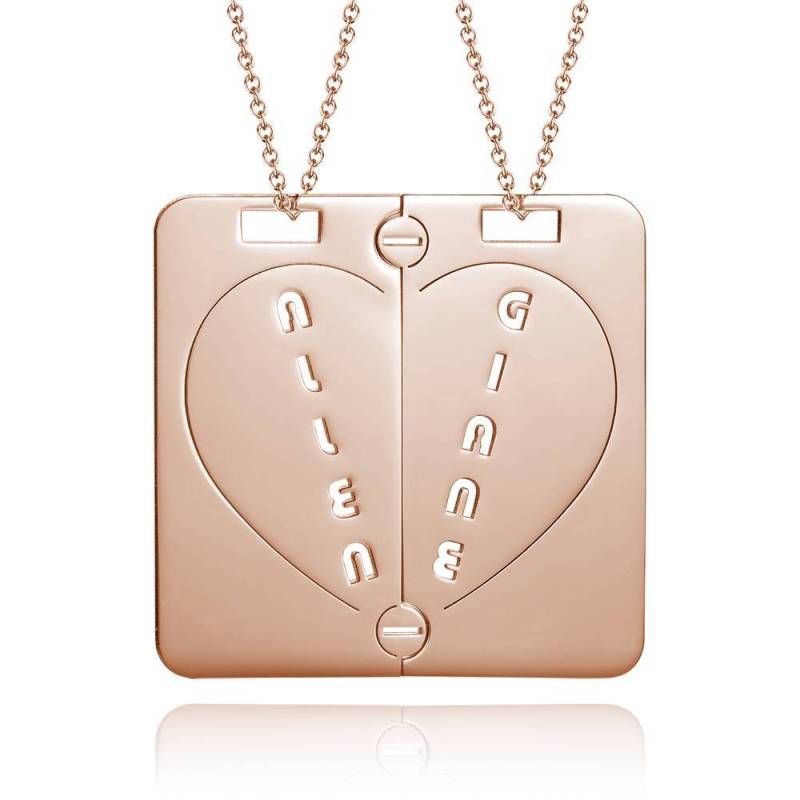 Personalized Couples Necklace Broken Heart Name Necklace Rose Gold