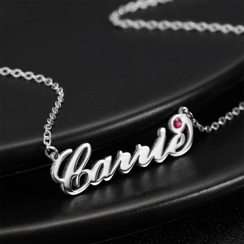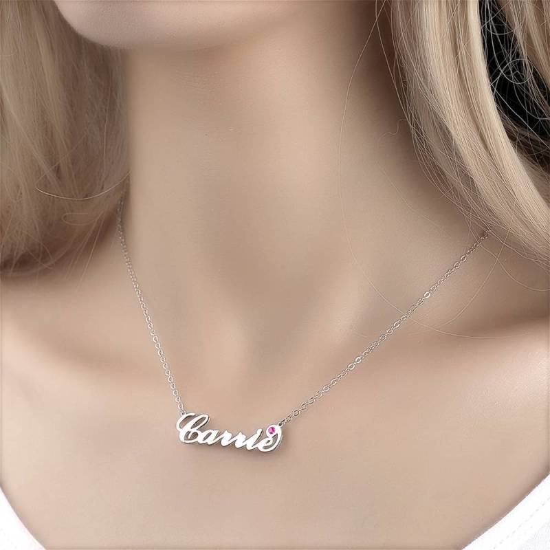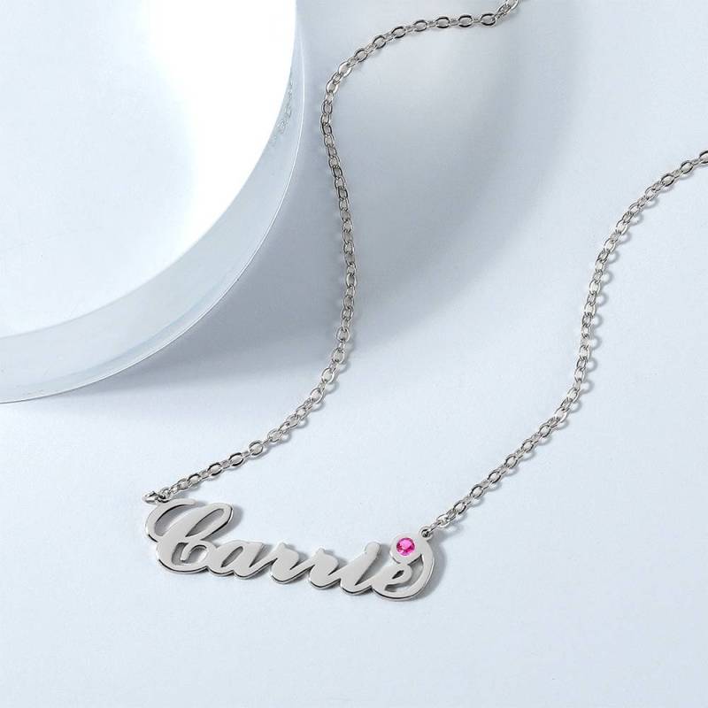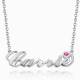 Personalized Birthstone Birthday Gift Name Necklace Platinum Plated Silver