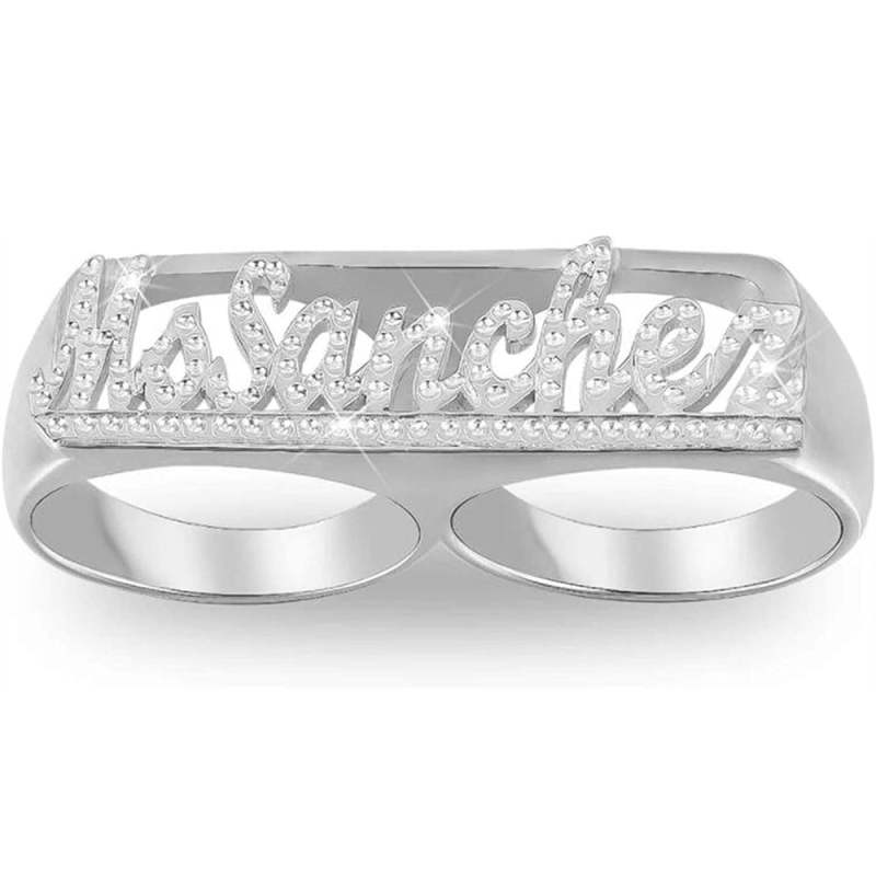 Personalized Name Ring With White Zircon Two Fingers Ring Jewelry Gift for Women Men
