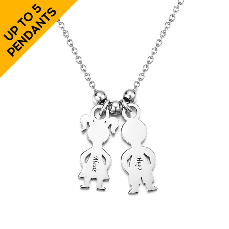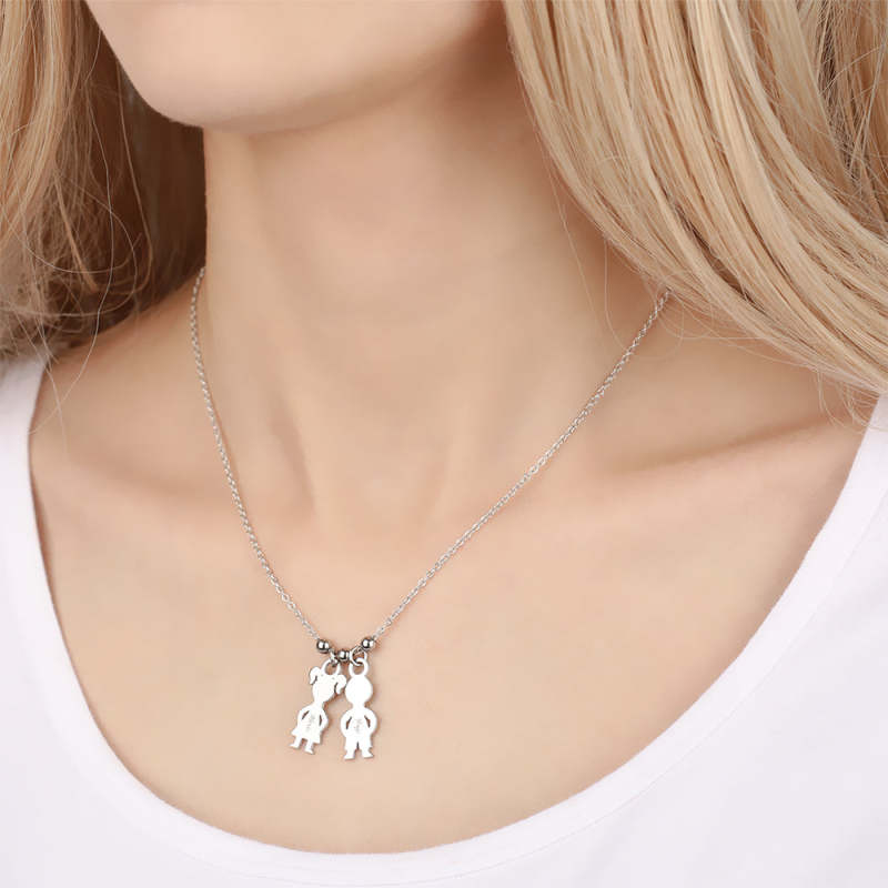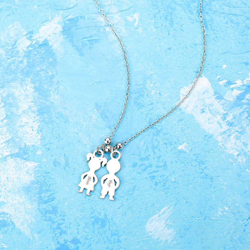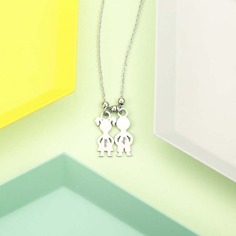 Personalized Necklace with 2 Children Charm for Mom Silver