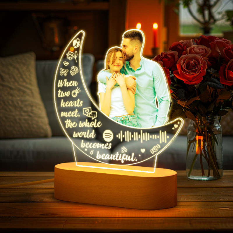 Personalized Photo Acrylic Moon Lamp Custom Night Light Gift for Couple Home Decor