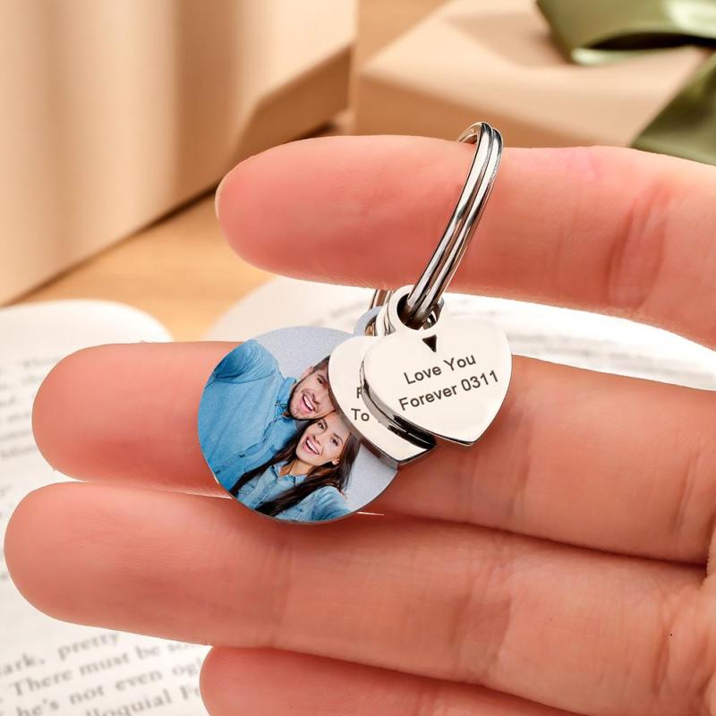 Personalized Photo Family Keychain Engraved Metal Key Chain Gifts For Him