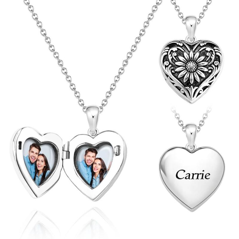 Personalized Photo Heart-Shaped Locket Necklace Retro Flower Pendant Jewelry For Her