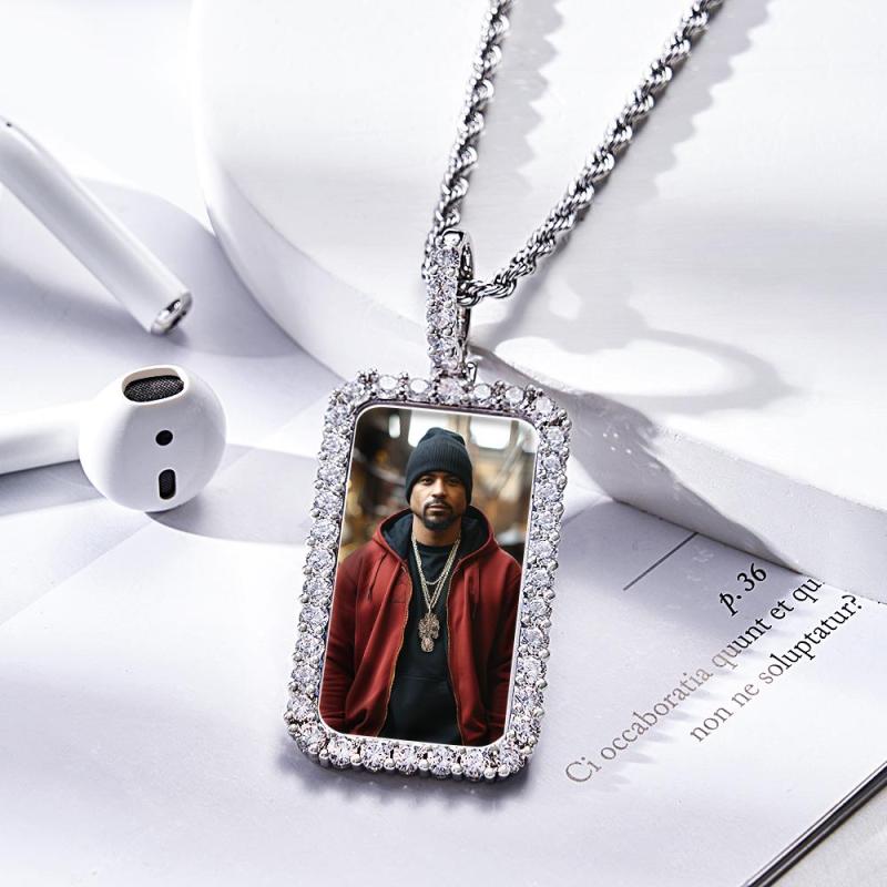 Personalized Photo Hip Hop Necklace Trendy Square Zircon Necklace For Him