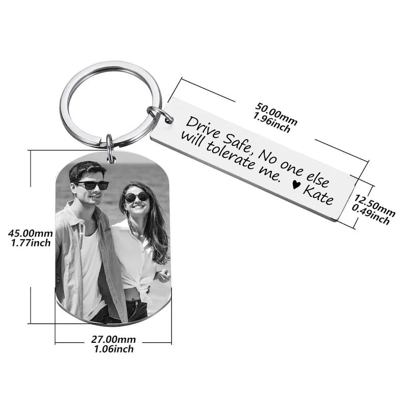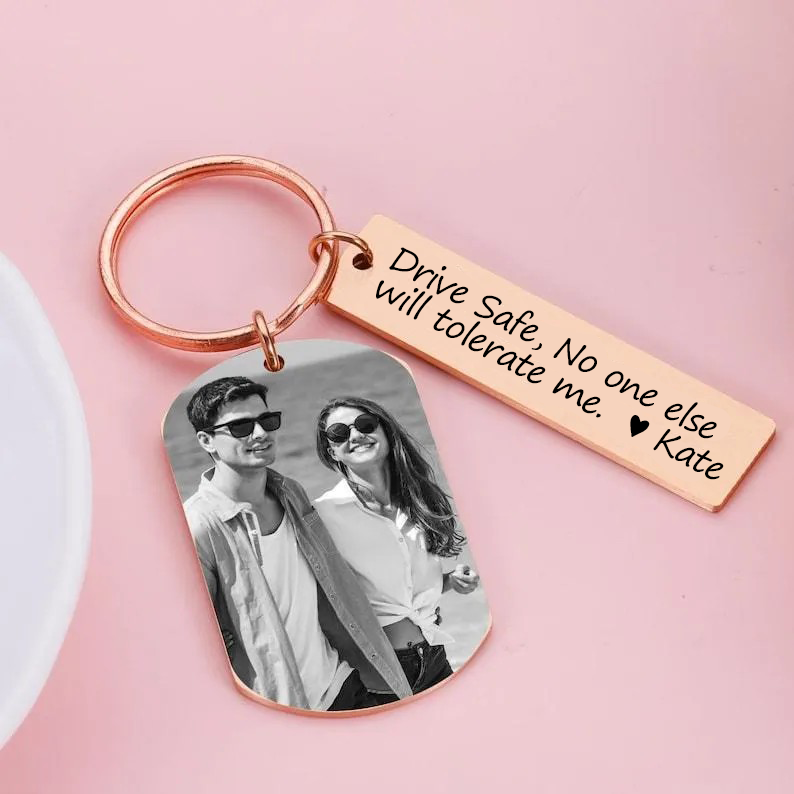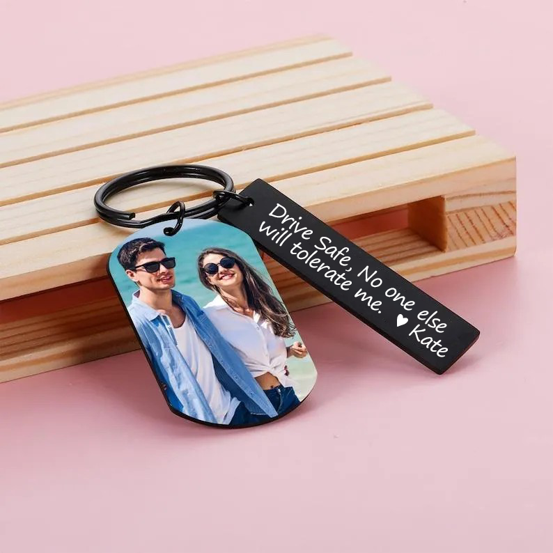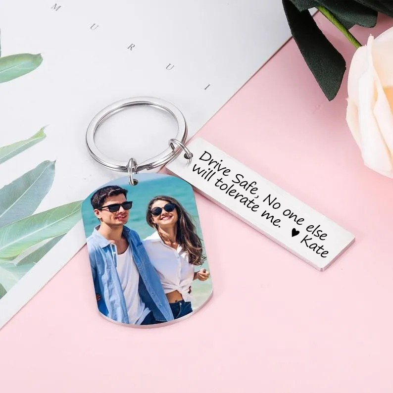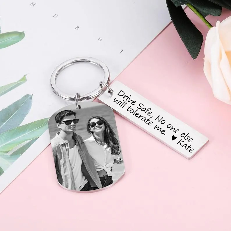 Personalized Photo Keychain, Engraved Picture Keychain, 1st Anniversary Boyfriend Gift, Girlfriend Gift Idea, 10 Years Valentine's Day Gift