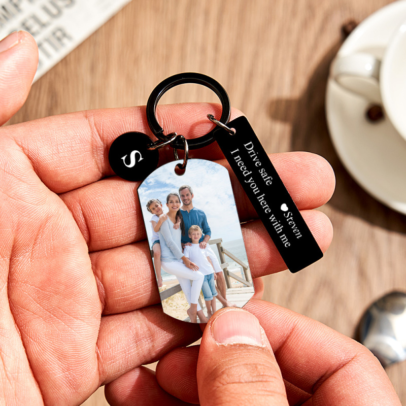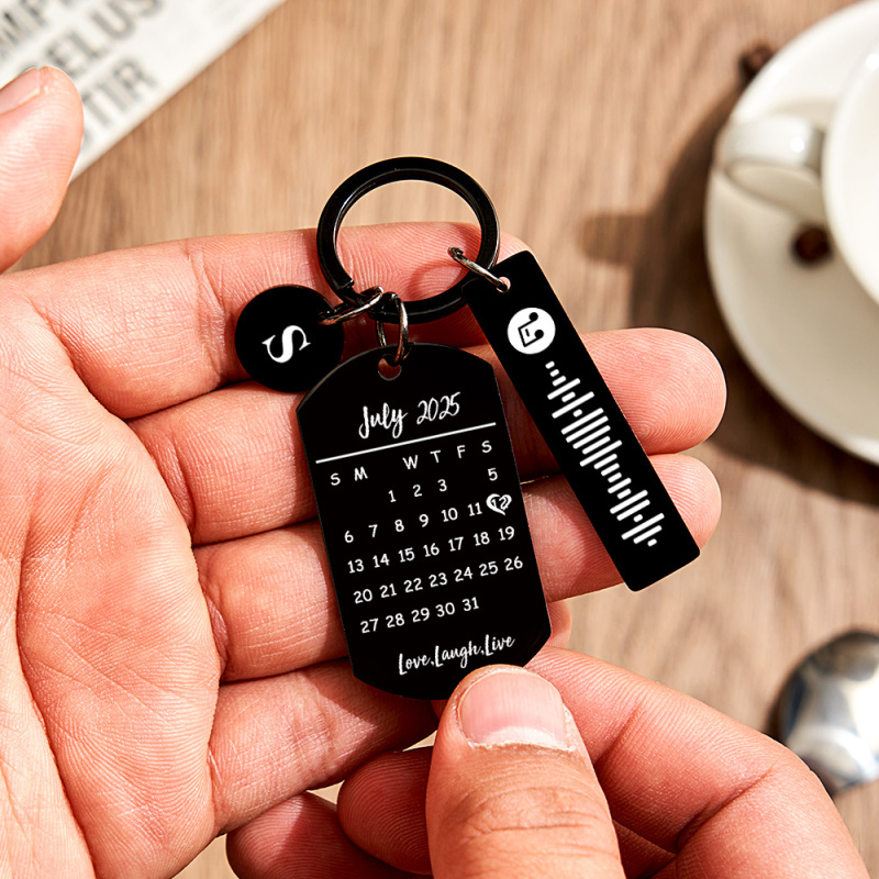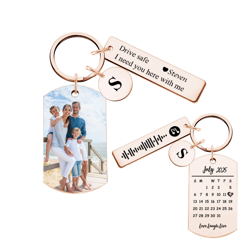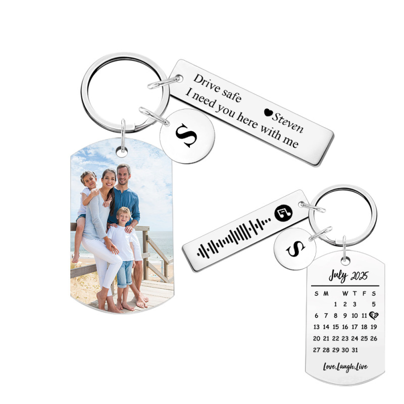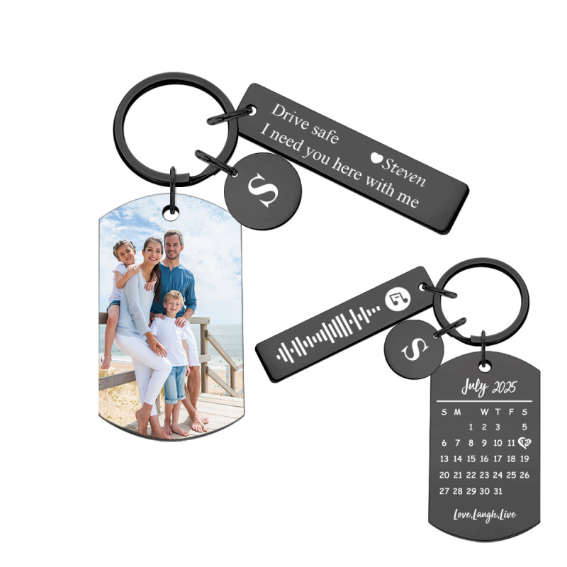 Personalized Photo Keychain with Spotify Code, Custom Calendar & "Drive Safe" Message, Anniversary Gift for Boyfriend, Couple's Gift