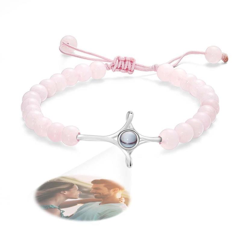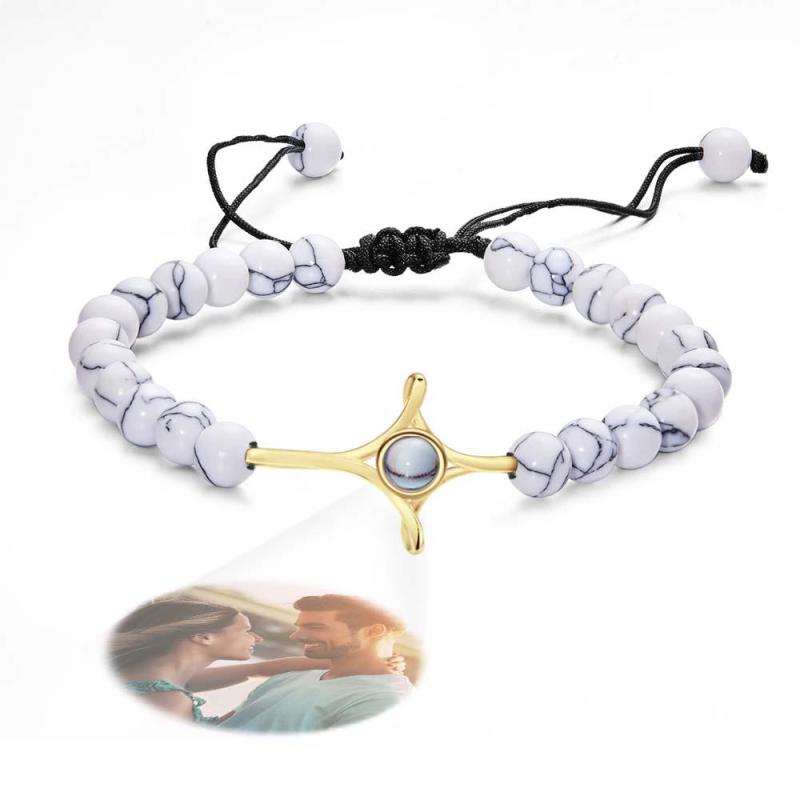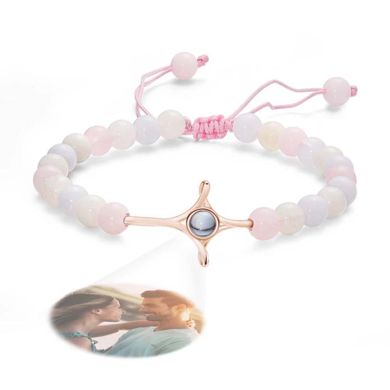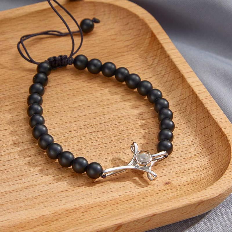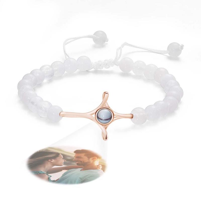 Personalized Photo Projection Beads Bracelet With Cross Memorial Gift For Her