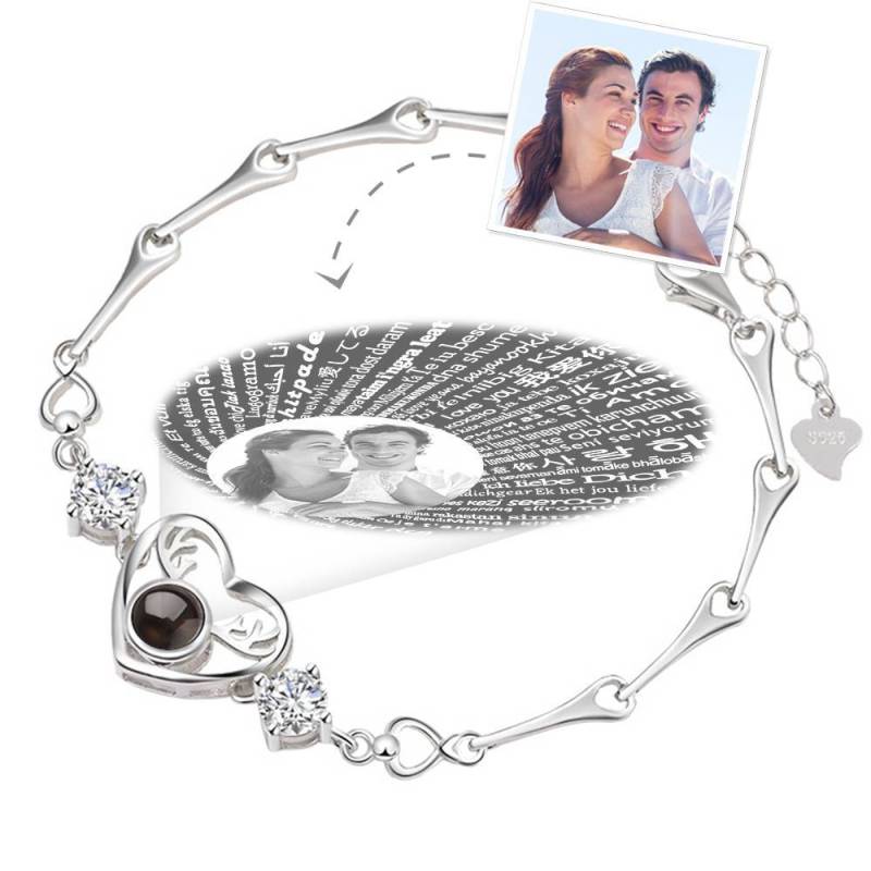 Personalized Heart Projection Bracelet With 100 Languages Says I Love You Silver